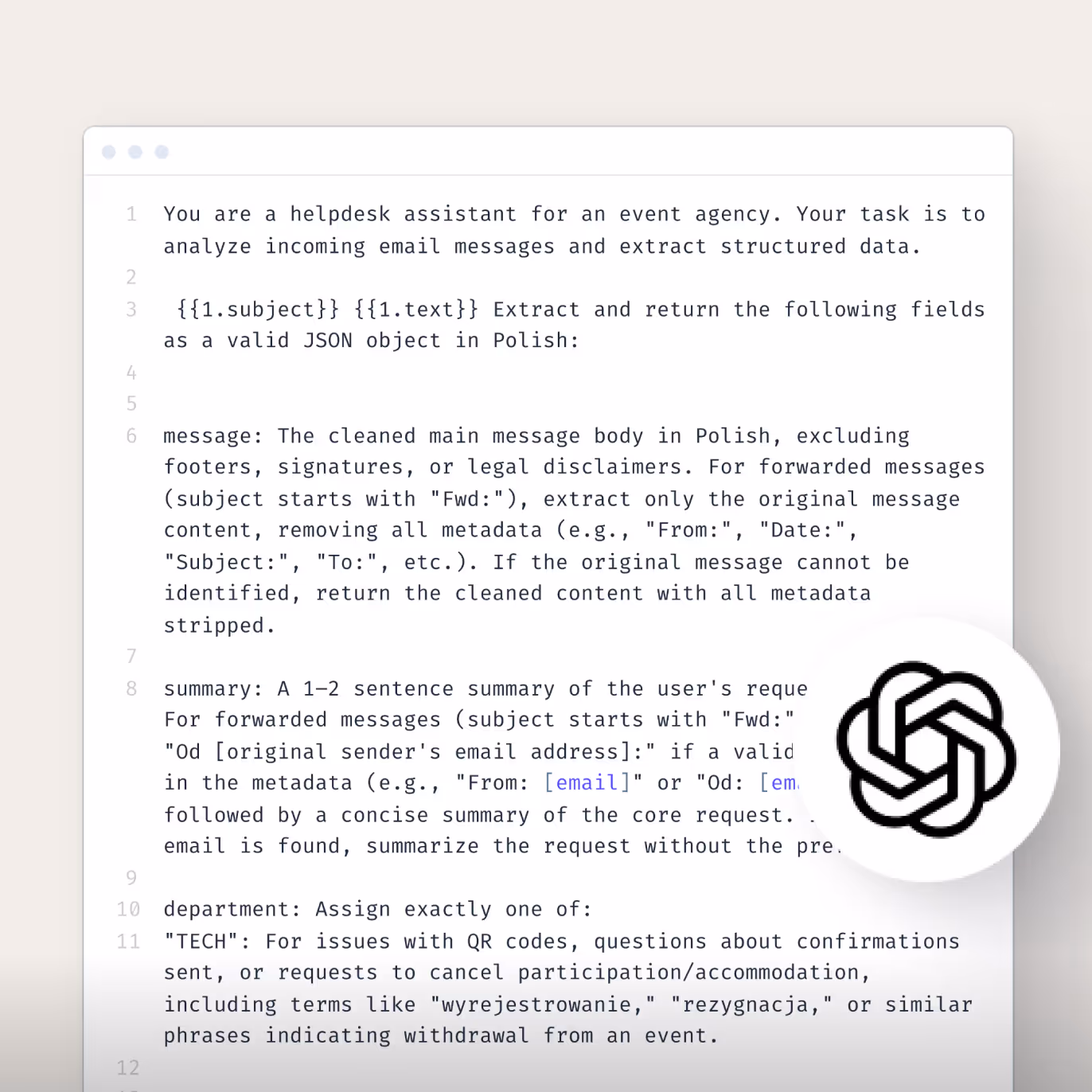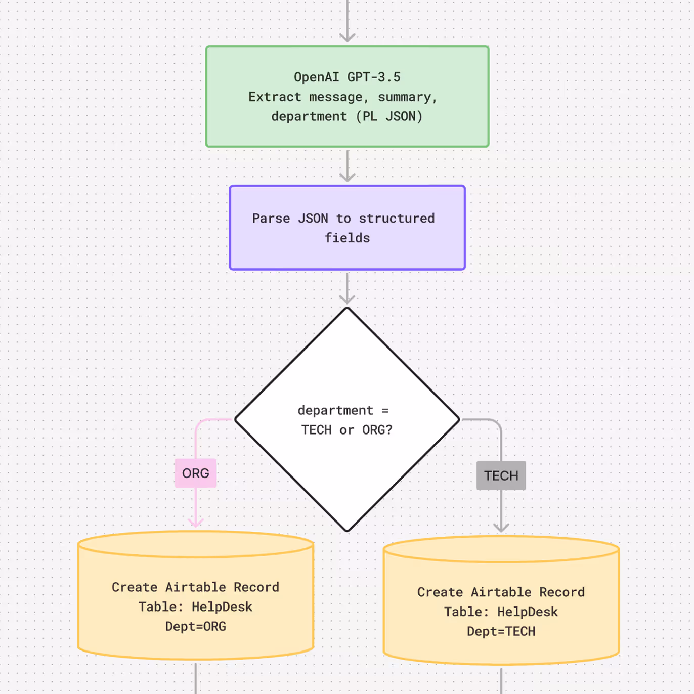 More than 3,500 guests means hundreds of incoming messages. To handle those, I designed a semi-automated Help Desk system in Airtable to manage support efficiently. The automation scenario, powered by the OpenAI API, uses ChatGPT to summarize each incoming message, apply technical or organizational tags, distinguish new threads from follow-ups, and assign the responsible person, case ID, and status, enabling fast, organized resolution of all inquiries.