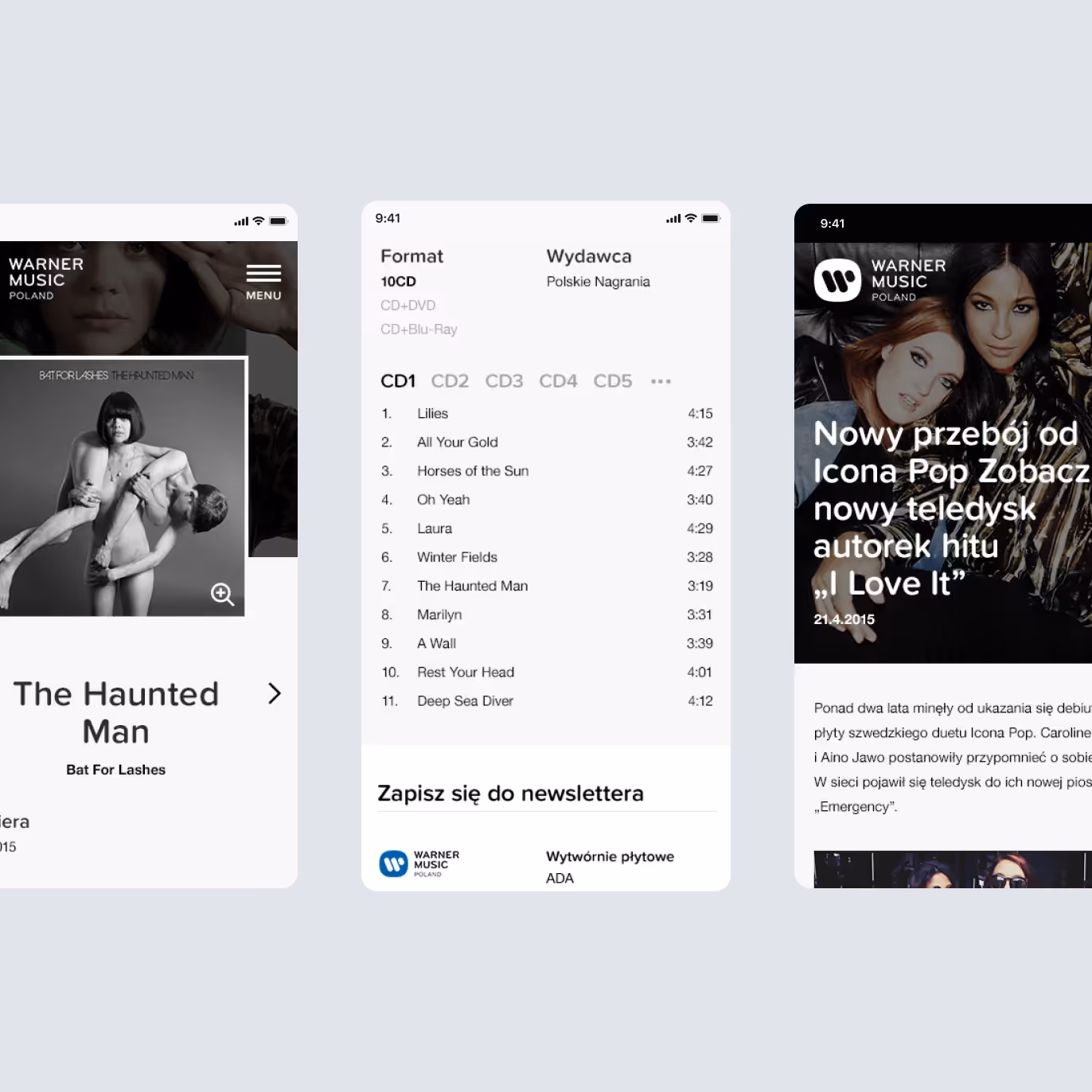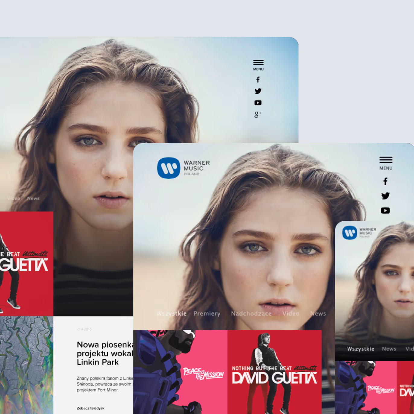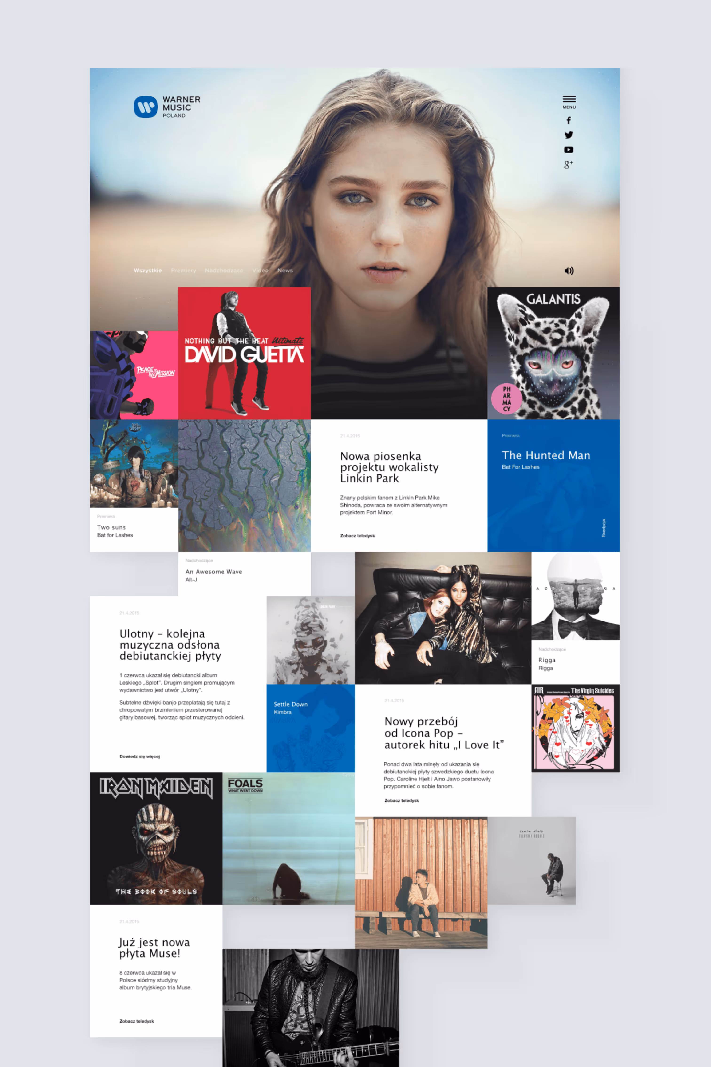 In Poland alone, there are more than a dozen premieres each week. Including news and videos, this results in significant information traffic. The previous Warner Music Poland webpage was static, featuring a deeply buried News section. The objective was to transform the website into a dynamic source of information, encouraging more frequent User visits.